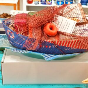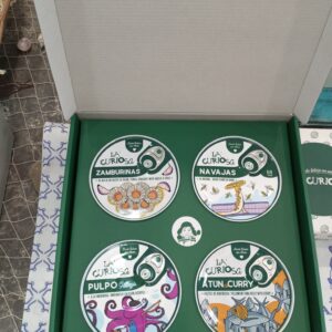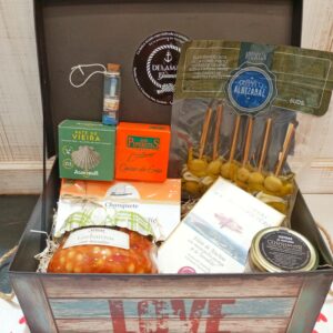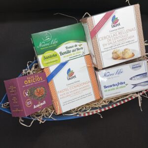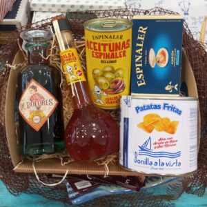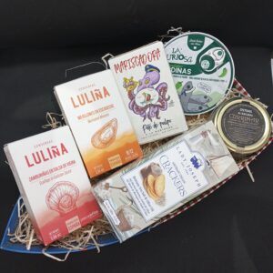Los pequeños detalles son los que marcan la diferencia, y por ello todas las cestas se presentan con red auténtica de pescador traída desde la Lonja de Vigo ( Galicia).