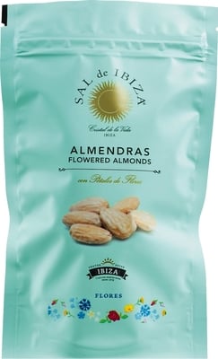 Almendra  marcona tostada y salada con flor de sal de Ibiza y un toque mágico,  una mezcla de flores de rosa, acianos y naranja. El sabor especial de la dulzura de las almendras y el sabor delicado de las flores dan como resultado una experiencia de sabor increíble.