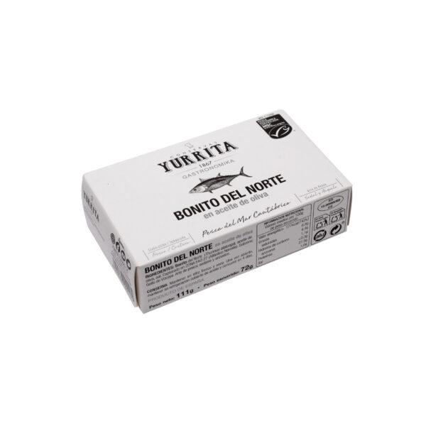 Este bonito cuenta con certificado MSC garantizando la pesca sostenible. Es una gama muy cuidada y completa, es un Bonito del Norte capturado en el Mar Cantábrico durante la Campaña Costera de Bonito. El pescado es capturado mediante artes de pesca tradicionales y sostenibles como son los sedales y anzuelos y toda su elaboración en conserva se trabaja en fresco. Esta gama demuestra la apuesta de Yurrita por elaborar productos selectos y muy cuidados durante todo el proceso, desde la captura de la especie hasta que llega al plato del consumidor, y por eso no puede faltar en Delamar Gourmet.