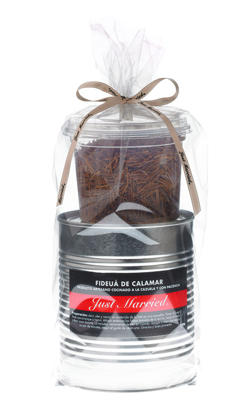 Ingredientes: Fideos de trigo tostados (18%), caldo de pescado (agua, pescado (rape y pescado de roca, buey de mar, centollo, aceite de girasol y sal), caldo de pollo (agua pollo, puerro, zanahoria, cebolla, apio, sal y pimienta) pota, sofrito (agua, tomate, cebolla, aceite de girasol, huevo, ajo, limón, sal y azúcar) picada (agua, harina de arroz, aceite de girasol, almendra y ajo).