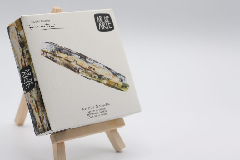 Hace tiempo que » las latas» dejaron de ser » comida guerra», hasta tal punto que han conseguido posicionarse muy merecidamente en lo mas alto, tanto que esta conserva de la Costa Da Morte gallega, la conservera la ha convertido en un arte, gracias también a la colaboración de Fernando Rei, un pintor gallego cuyos lienzos están plasmados en el impresionante packaging que las envuelve.