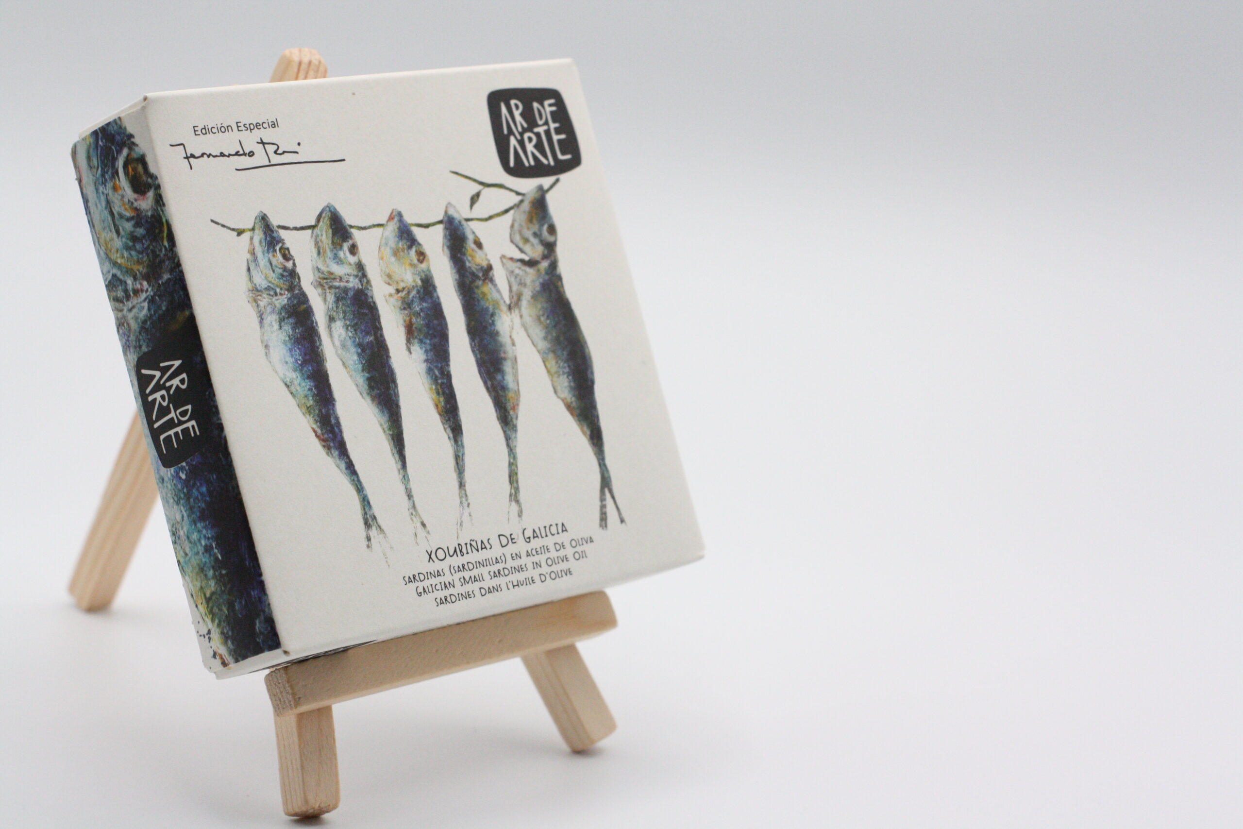 Hace tiempo que » las latas» dejaron de ser » comida guerra», hasta tal punto que han conseguido posicionarse muy merecidamente en lo mas alto, tanto que esta conserva de la Costa Da Morte gallega, la conservera la ha convertido en un arte, gracias también a la colaboración de Fernando Rei, un pintor gallego cuyos lienzos están plasmados en el impresionante packaging que las envuelve.